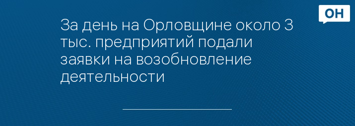 За день на Орловщине около 3 тыс. предприятий подали заявки на возобновление деятельности