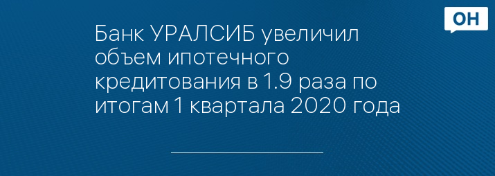 Банк УРАЛСИБ увеличил объем ипотечного кредитования в 1.9 раза по итогам 1 квартала 2020 года