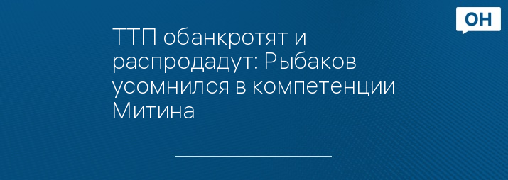ТТП обанкротят и распродадут: Рыбаков усомнился в компетенции Митина
