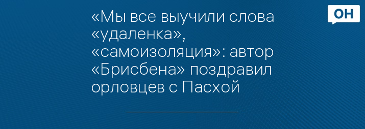 «Мы все выучили слова «удаленка», «самоизоляция»: автор «Брисбена» поздравил орловцев с Пасхой