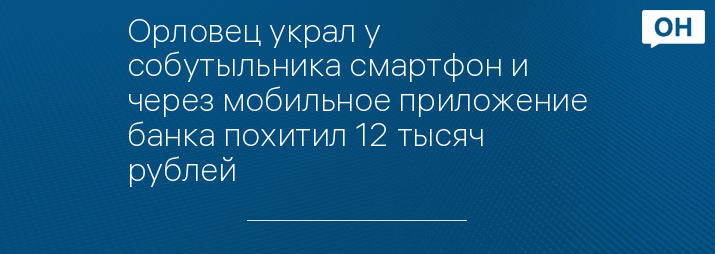 Орловец украл у собутыльника смартфон и через мобильное приложение банка похитил 12 тысяч рублей