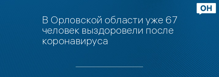 В Орловской области уже 67 человек выздоровели после коронавируса