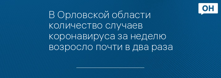 В Орловской области за последнюю неделю число заразившихся COVID-19 увеличилось почти в два раза, следует из исследоваия Информационного центра по ситуации с коронавирусом в России.