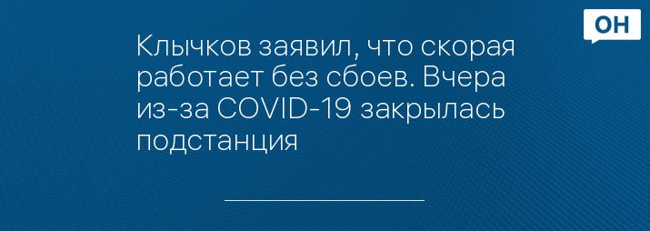 Клычков заявил, что скорая работает без сбоев. Вчера из-за COVID-19 закрылась подстанция