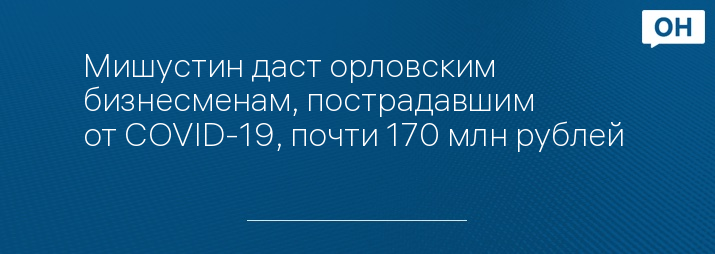 Мишустин даст орловским бизнесменам, пострадавшим от COVID-19, почти 170 млн рублей