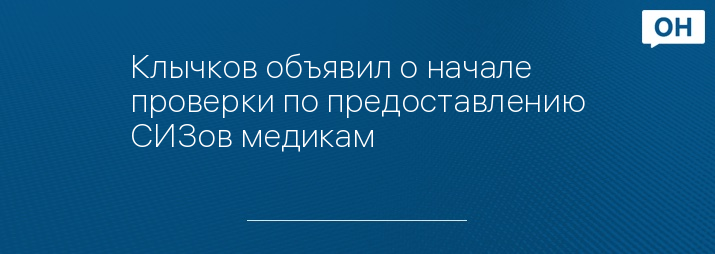 Клычков объявил о начале проверки по предоставлению СИЗов медикам