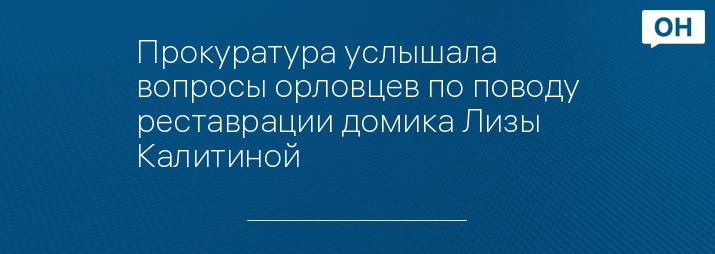 Орловцы предложат новому прокурору задать вопросы относительно домика Лизы Калитиной