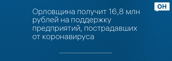 Орловщина получит 16,8 млн рублей на поддержку предприятий, пострадавших от коронавируса