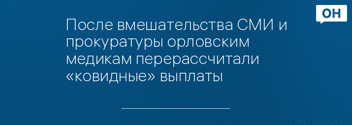 - 15 мая «Орловские новости» опубликовали материал, в котором рассказывалось о жалобах медиков из районов области на стимулирующие выплаты, обещанные президентом. Собеседники «ОН» утверждают, что они получили денег меньше, чем было обещано. Также возникли вопросы к методикам расчета этих выплат, в особенности – в свете недавнего выступления Владимира Путина, который заявил, что считать отработанные часы с ковид-пациентами недопустимо и потребовал прекратить «бюрократическую канитель». Президент отметил, что четко назвал суммы, которые должны получить медицинские работники.