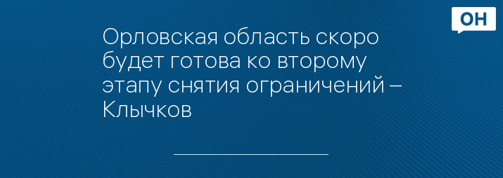 Орловская область скоро будет готова ко второму этапу снятия ограничений – Клычков