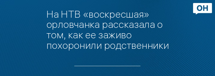На НТВ «воскресшая» орловчанка рассказала о том, как ее заживо похоронили родственники