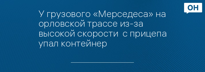 У грузового «Мерседеса» на орловской трассе из-за высокой скорости с прицепа упал контейнер