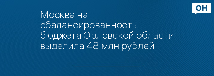 Москва на сбалансированность бюджета Орловской области выделила 48 млн рублей