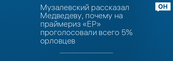 Музалевский рассказал Медведеву, почему на праймериз «ЕР» проголосовали всего 5% орловцев