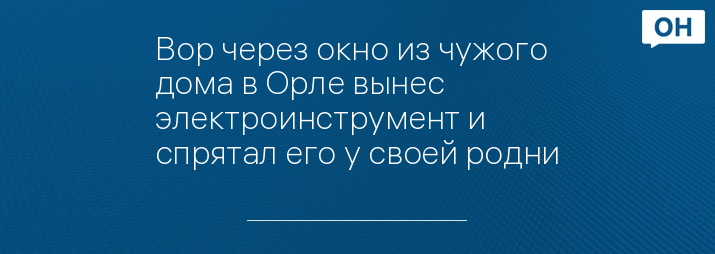 Вор через окно из чужого дома в Орле вынес электроинструмент и спрятал его у своей родни
