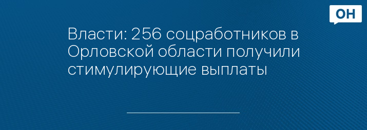 - В конце мая в правительстве Орловской области сообщали, что из федерального бюджета на стимулирующие выплаты социальным работникам было перечислено свыше 32,6 млн рублей. Выплаты должны были получить 148 работников до 29 мая.