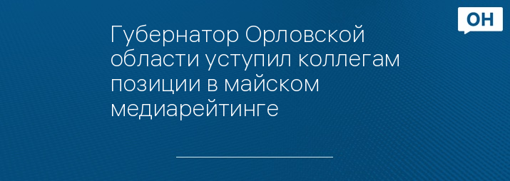 Губернатор Орловской области уступил коллегам позиции в майском медиарейтинге