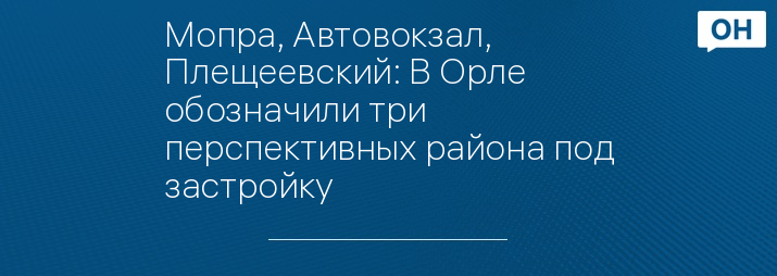 Мопра, Автовокзал, Плещеевский: В Орле обозначили три перспективных района под застройку