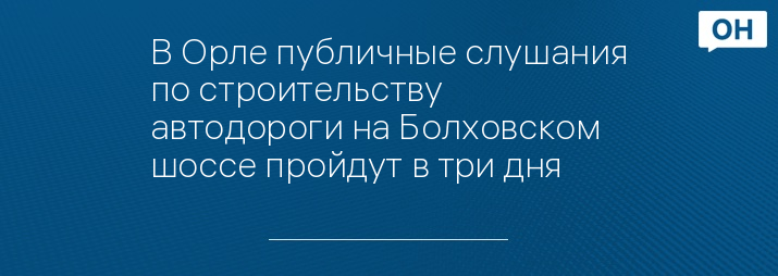 "Публичные слушания по вопросу проекта планировки и проекта межевания территории для строительства автомобильной дороги общего пользования регионального значения от Болховского шоссе до Наугорского шоссе (на участке от Болховского шоссе до ул. Приборостроительной) переносятся на 17.00 21, 22 и 23 июля", - говорится в официальном сообщени городской администрации.