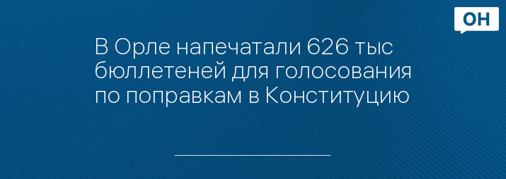Избирательная комиссия Орловской области 15 июня приняла от орловской типографии «Труд» изготовленный тираж бюллетеней для общероссийского голосования по вопросу одобрения изменений в Конституцию РФ. При изготовлении бюллетеней для защиты от подделки использовалась бумага с защитной сеткой.