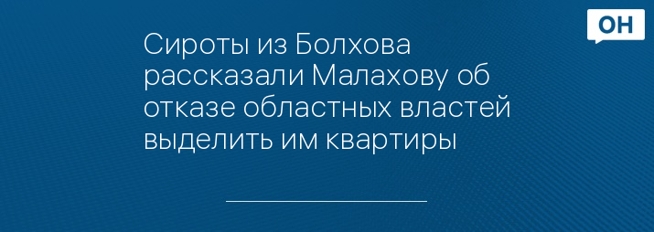 Сироты из Болхова рассказали Малахову об отказе областных властей выделить им квартиры