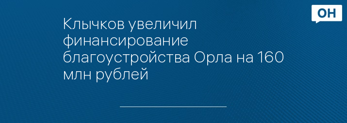 Клычков увеличил финансирование благоустройства Орла на 160 млн рублей