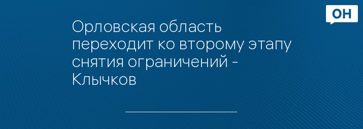 Орловская область переходит ко второму этапу снятия ограничений - Клычков