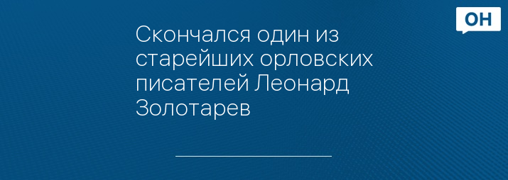 29 июня на 86-м году жизни скончался один из старейших орловских писателей, прозаик, поэт, драматург Леонард Михайлович Золотарев, сообщает пресс-служба областного правительства.