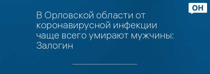 В Орловской области от коронавирусной инфекции чаще всего умирают мужчины: Залогин
