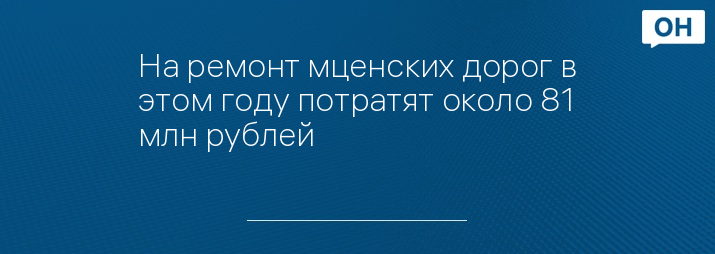 На ремонт мценских дорог в этом году потратят около 81 млн рублей