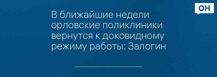 В ближайшие недели орловские поликлиники вернутся к доковидному режиму работы: Залогин