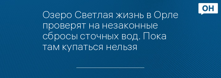 Озеро Светлая жизнь в Орле проверят на незаконные сбросы сточных вод. Пока там купаться нельзя