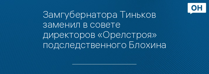 Замгубернатора Тиньков заменил в совете директоров «Орелстроя» подследственного Блохина