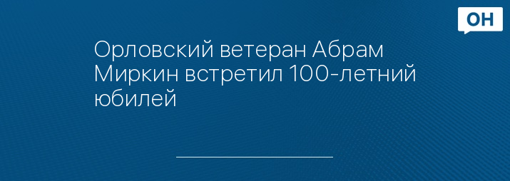 Орловский ветеран Абрам Миркин встретил 100-летний юбилей