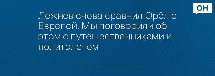 Лежнев снова сравнил Орёл с Европой. Мы поговорили об этом с путешественниками и политологом