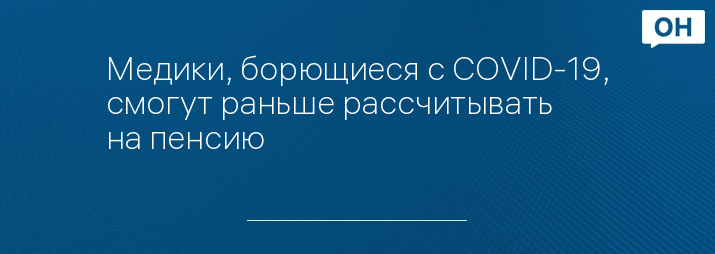Медики, борющиеся с COVID-19, смогут раньше рассчитывать на пенсию