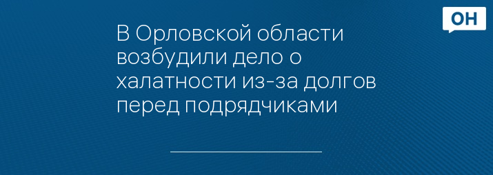 В орловской области возбудили уголовное дело о халатности из-за долгов перед подрядчиками, сообщили в областной прокуратуре.