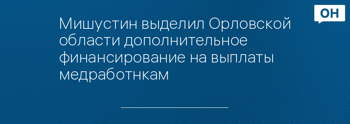 Мишустин выделил Орловской области дополнительное финансирование на выплаты медработнкам