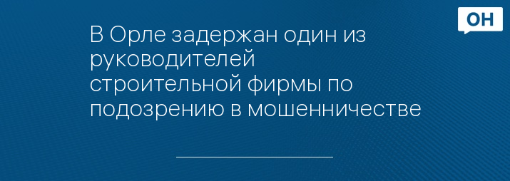 По подозрению в совершении мошенничества в особо крупном размере задержан один из руководителей строительной фирмы ООО «Регионстрой» в Орле, сообщили в пресс-службе регионального УМВД.