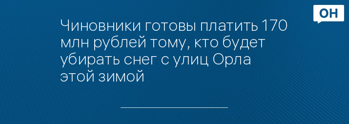 Чиновники готовы платить 170 млн рублей тому, кто будет убирать снег с улиц Орла этой зимой
