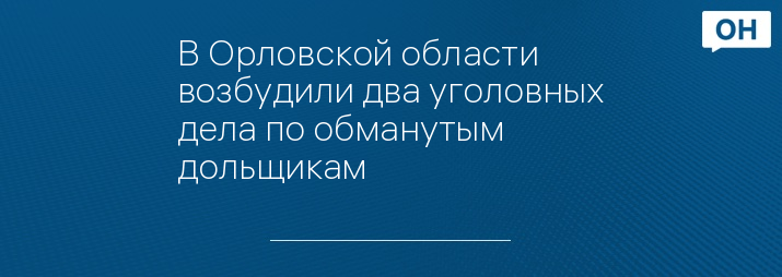 В Орловской области возбудили два уголовных дела по обманутым дольщикам