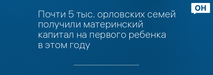 Почти 5 тыс. орловских семей получили материнский капитал на первого ребенка в этом году