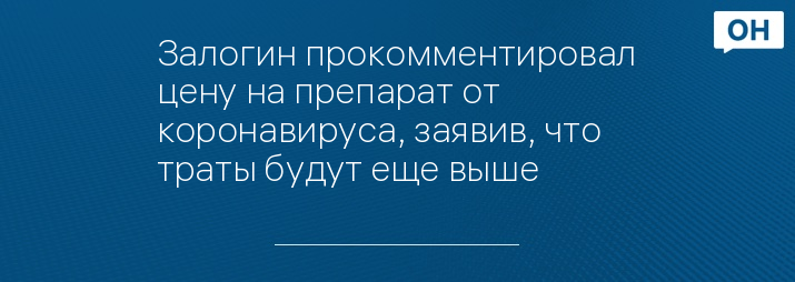 Залогин прокомментировал цену на препарат от коронавируса, заявив, что траты будут еще выше