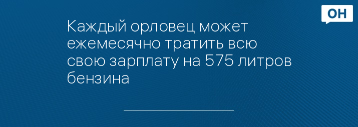 Каждый орловец может ежемесячно тратить всю свою зарплату на 575 литров бензина