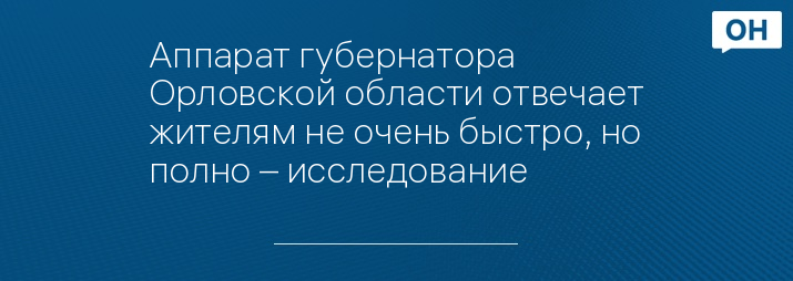 Аппарат губернатора Орловской области отвечает жителям не очень быстро, но полно – исследование