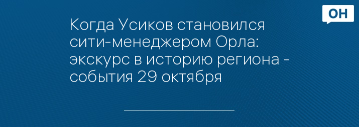 Когда Усиков становился сити-менеджером Орла: экскурс в историю региона - события 29 октября