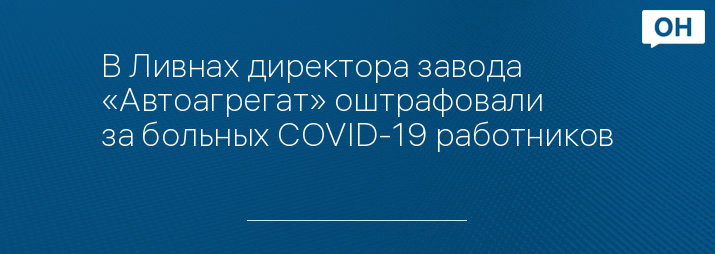 В Ливнах директора завода «Автоагрегат» оштрафовали за больных COVID-19 работников