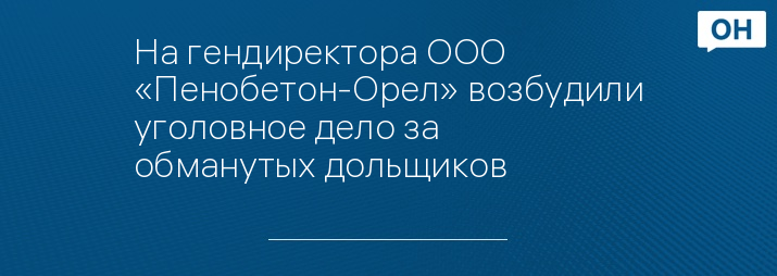 На гендиректора ООО «Пенобетон-Орел» возбудили уголовное дело за обманутых дольщиков