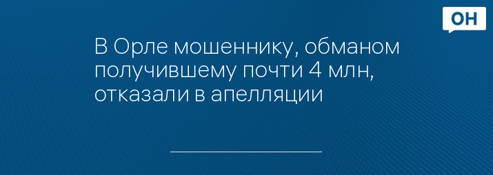 В Орле мошеннику, обманом получившему почти 4 млн, отказали в апелляции