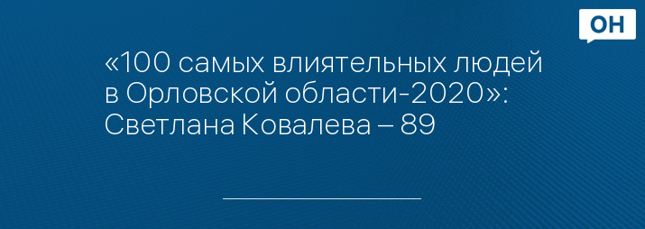 «100 самых влиятельных людей в Орловской области-2020»: Светлана Ковалева – 89
